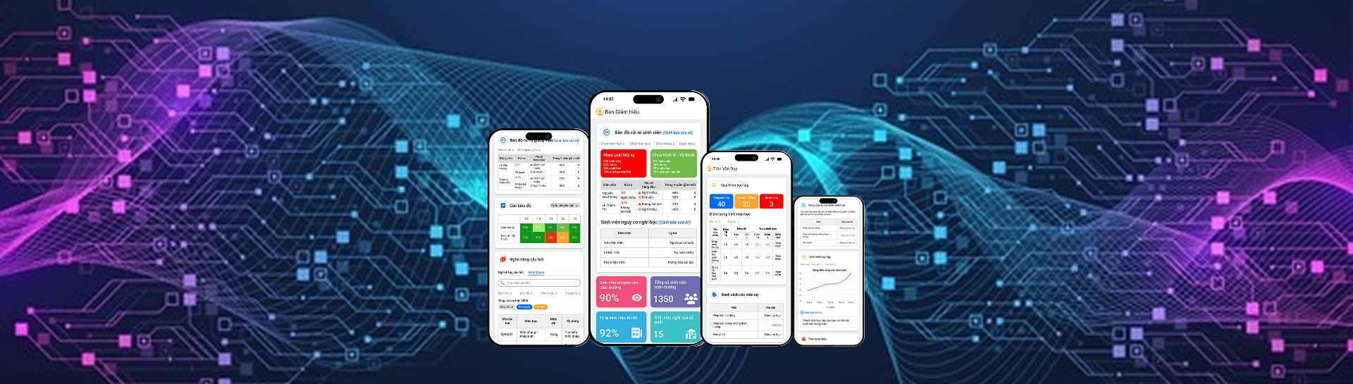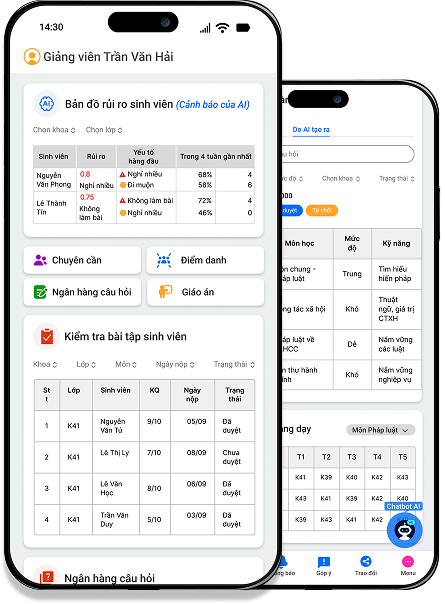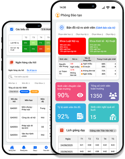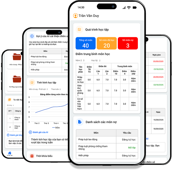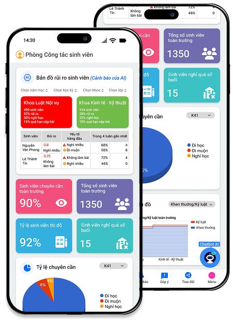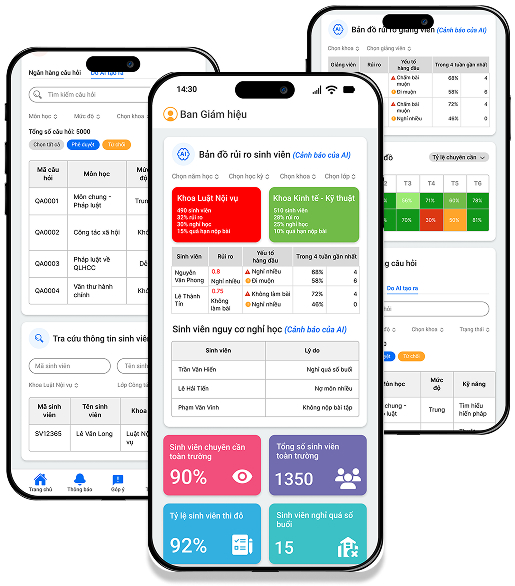 - Theo dõi kết quả học tập, nhận cảnh báo sớm và đồng hành cùng sinh viên theo thời gian thực.